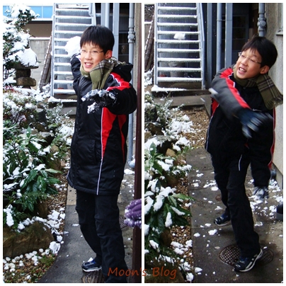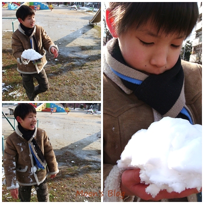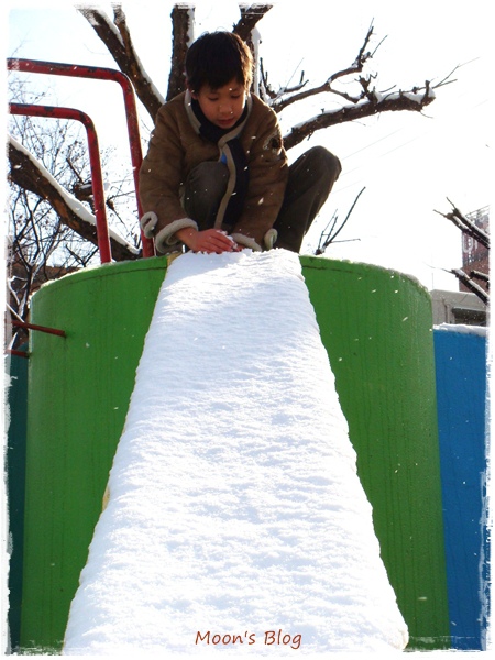 清早一開窗 , 棉花糖般的銀色世界誘得孩子們不安於室 , 蠢蠢欲動。