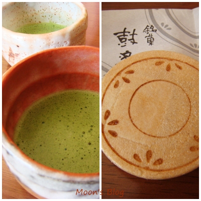 奶奶端上抹茶及和菓子 , 喝一口 , 暖暖身。